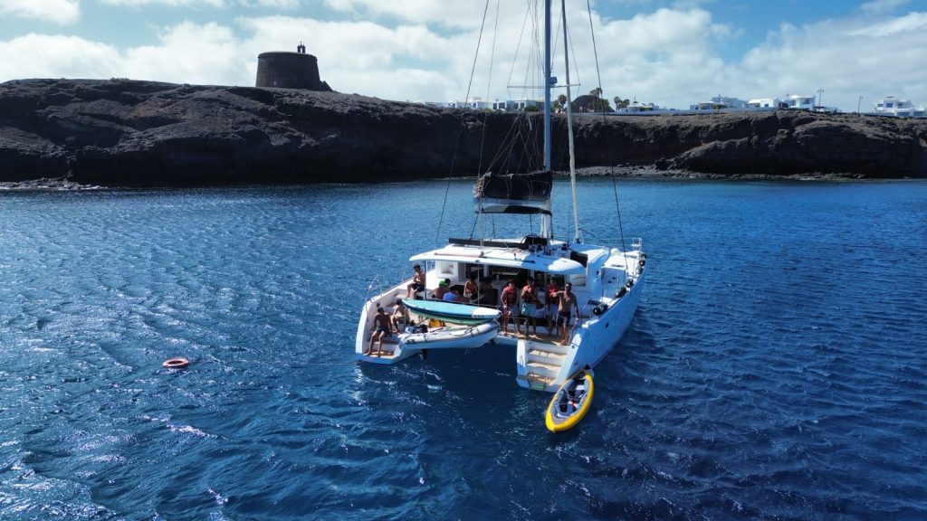 La salida se realiza desde Marina Rubicón, con tripulación profesional a bordo, garantizando seguridad y comodidad en todo momento. Esta opción compartida es ideal para quienes buscan una excursión divertida, accesible y llena de experiencias sin renunciar al confort de un catamarán.